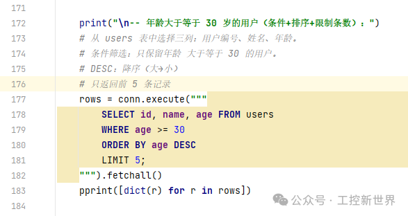 常见查询示例:条件+排序+限制条数