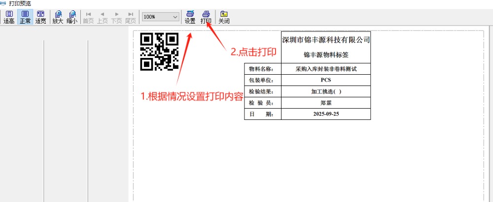 6.采购入库标签会由打印机内生成,接着贴到对应实物上作为入库标记。