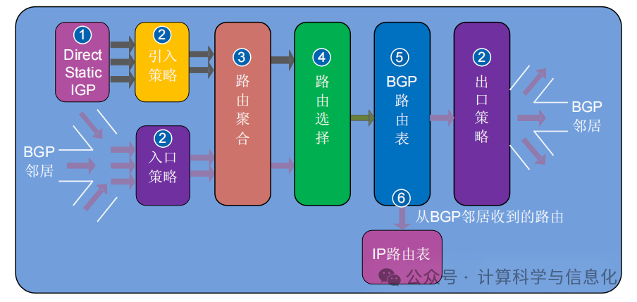 可以从BGP邻居获得,也可以手工将IGP路由导入BGP路由表,还可以将其它路由重分布进BGP。