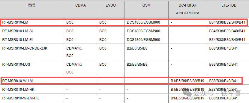 可以看到,5根天线分别为:2根2.4 GHz WLAN天线、2根4G LTE天线和1根GPS天线。 那么,这些天线在实际使用中究竟有多大影响?我们通过一系列测试来揭秘。 其中,2.4 GHz WLAN天线我们在介绍MSR810-W时提过(【科普文】为什么无线速率分144M、300M、866M?怎么来的?),天线数量与NSS(Number of spatial streams,空间流数)休戚相关,正所谓人多力量大,在协议支持的情况下,无线速率跟天线数量成线性关系。在应用中,如果同时安装两根天线,MSR810-W连接客户端时协商的收发速率都能达到300 Mbps;而如果卸掉其中一根天线,最大协商速率便会惨遭腰斩,瞬间跌至150 Mbps,可谓是独木难支。 其实,这个2.4 GHz WLAN天线也可以用在5 GHz,只是设备不支持5 GHz罢了。 当然,这5根天线区分起来也很方便,短的两根是WLAN天线,长度为133mm;剩下的2根4G LTE天线和1根GPS天线长度都是166mm,稍微长一些,而且还是通用的,不用额外区分。 而且,我在查阅官方资料的时候发现,MSR810-W-LM和MSR810-LM支持的4G频段其实是有差异的。