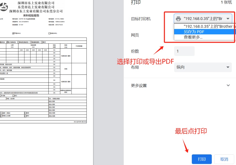 然后选择对应的打印机选项,可以选打印机打印出来,或者导出PDF