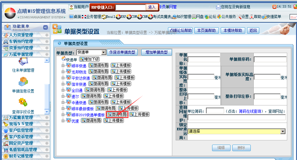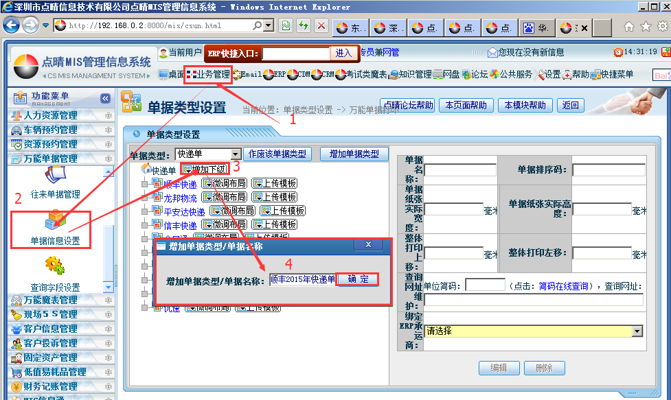 新模板添加操作步骤:业务管理——万能单据管理——单据信息设置——增加下级——录入名称;如下图所示: